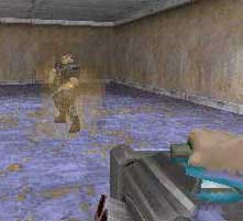 Armes: (touche équivalente dans Q2) Blaster (1- blaster) Shotgun (2- shotgun) SHC (3- super shotgun) Flare gun (6- grenade launcher) Guided Napalm missile (7- rocket launcher) Freeze Gun (9) Flame thrower (0- BFG) | ![]() |