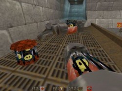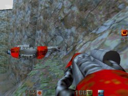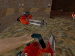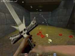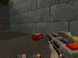 ChainsawTouche 2 = "cmd class2" (rotation avec la l'épée) ou "use chainsaw" Une première dans Quake2, qui n'est pas sans nous rappeler le sanglant "Massacre à la tronçonneuse". Presque aussi efficace que l'épée! | ![]() | Explosive SuperShotgunTouche 3 = "cmd class3" ou "use explosive super shotgun" Tout comme dans Painkeep, on retrouve les fameuses balles explosives. Le fusil qu'il faut ramasser est le même que celui de base, mais il est accessible seulement si vous avez des balles explosives | ![]() |
