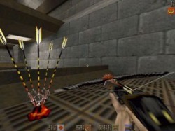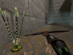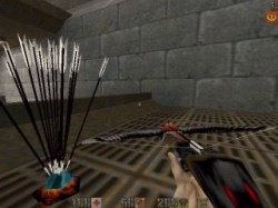 Arbalète avec flèches normalesTouche 4 ="cmd class4" (rotation des 3 types de flèche) ou "use crossbow" Une arbalette, ça peut paraitre curieux mais c'est très fun ! | ![]() | Arbalète avec flèches empoisonnéesTouche 4 ="cmd class4" (rotation des 3 types de flèche) ou "use poison crossbow" La même avec des flèches empoisonnées comme les grenades à poison. Il suffit juste de ramasser les flèches appropriées. | ![]() |