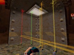 Gravity BeltTouche B "cmd belt" Cette option désactive la gravité terrestre et peut vous éviter de tomber brusquement d'une grande hauteur. Elle est cependant à utiliser avec précaution car si quelqu'un a lancé un "Gravity Vortex", vous risquez d'être attiré encore plus facilement! | Note: Cette faculté, disponible dès le départ, consomme (lentement) et fonctionne avec des "cells" (les munitions de l'hyperblaster et du BFG). | Tele ZoomTouche Z "zoom1" : zoom avant Touche X "zoom0" : zoom arrière C'est un Zoom pré-configuré pour les débutants, car les habitués savent le faire très facilement avec les commandes de Quake2... | ![]() |