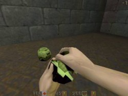 Flash GrenadeTouche G = "cmd grenades" (rotation des 3 types) ou "use flash grenades" Connue des adeptes de Teamfortress cette grenade éblouira tous ceux qui sont dans le champ d'action pendant quelques secondes. | ![]() | Poison GrenadeTouche G = "cmd grenades" (rotation des 3 types) ou "use poison grenades" Là aussi, certains reconnaîtront la grenade empoisonnée qui vous donnera l'impression d'être ivre pendant de longues secondes... | ![]() |