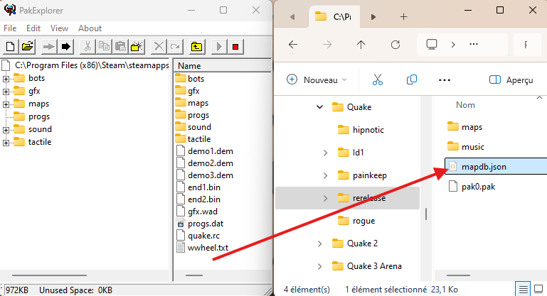 Note :Vous pouvez décompresser tout le fichier PAK0.PAk si vous êtes curieux mais dans notre cas, on va juste besoin du fichier "mapdb.json"
